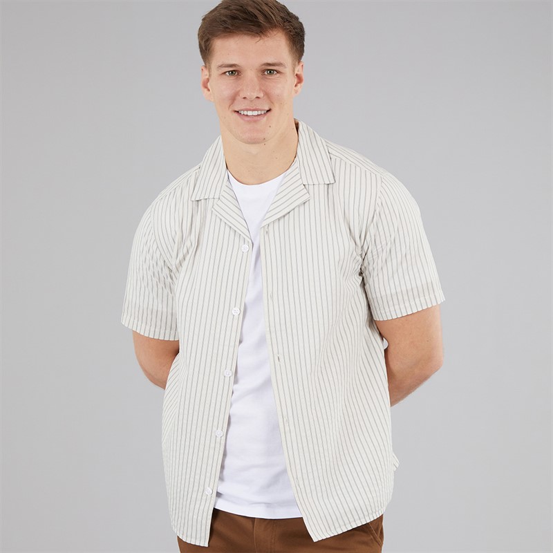 C.R.C. Seersucker koszula dla niego dojrzały kolor White St