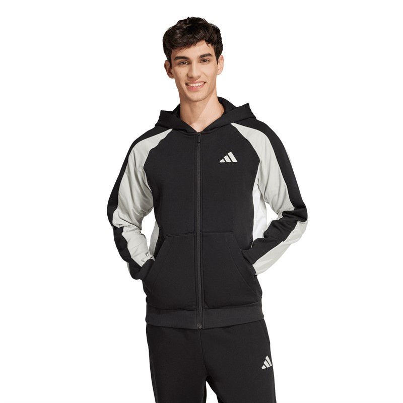 adidas Bluza z kapturem na suwak dla niego z blokami kolorów sezonowych Essentials kolor Czarny